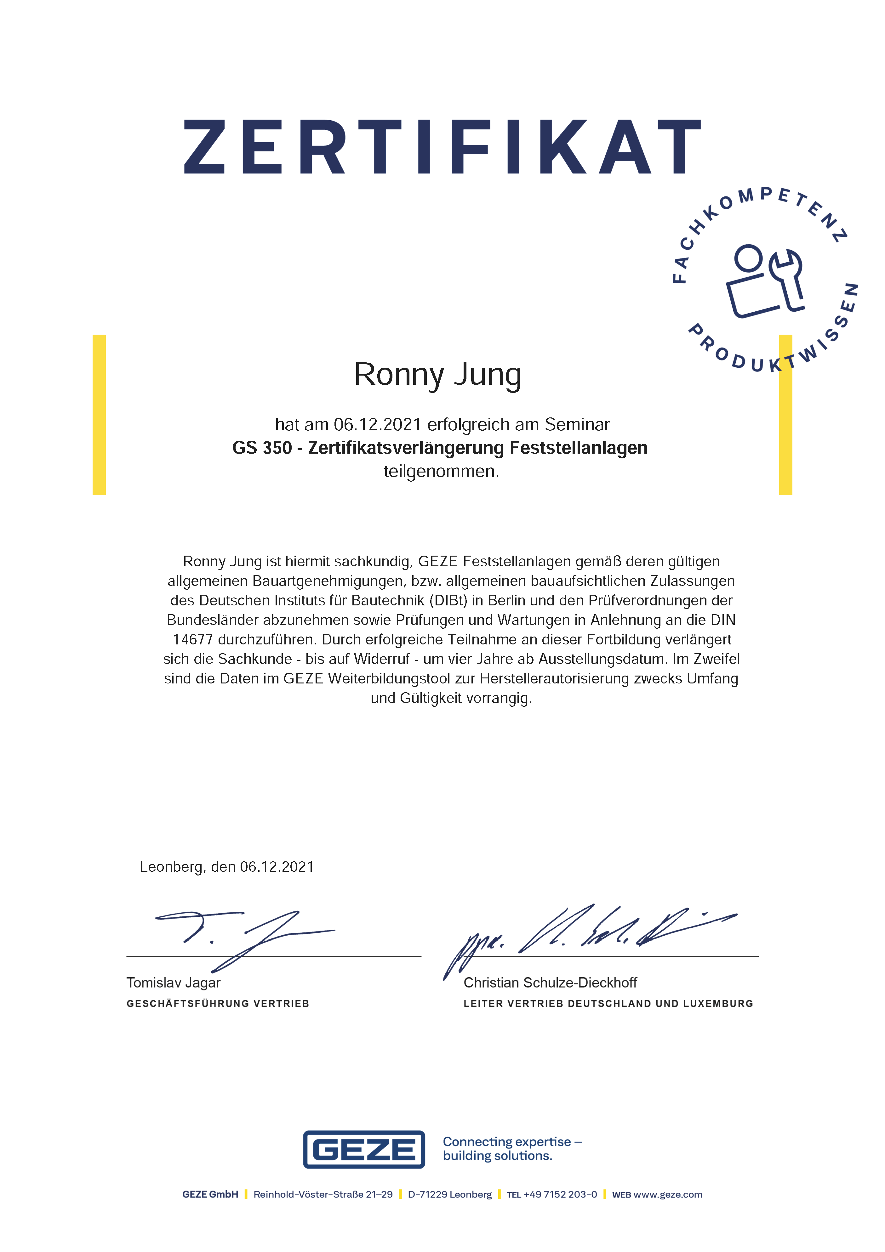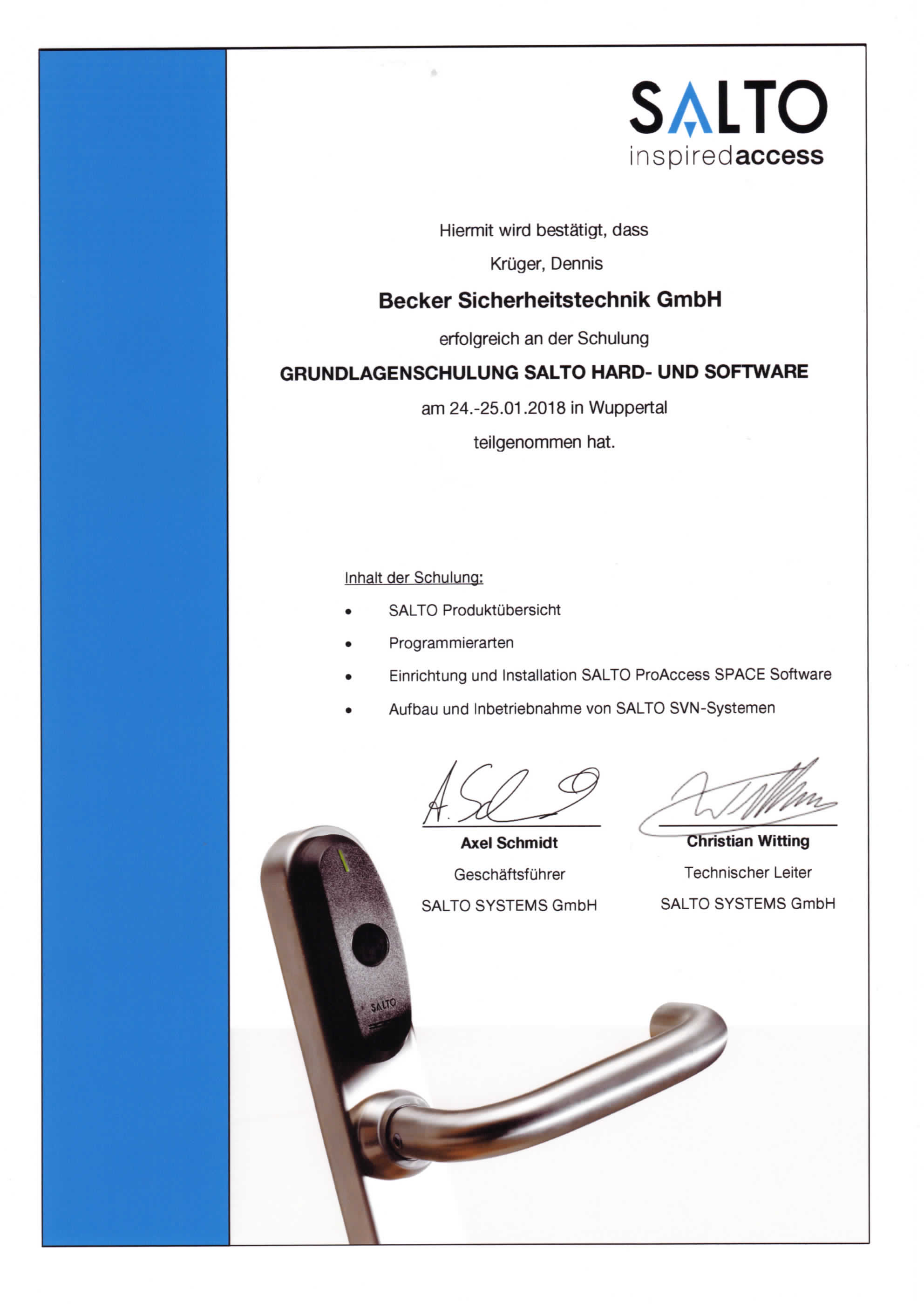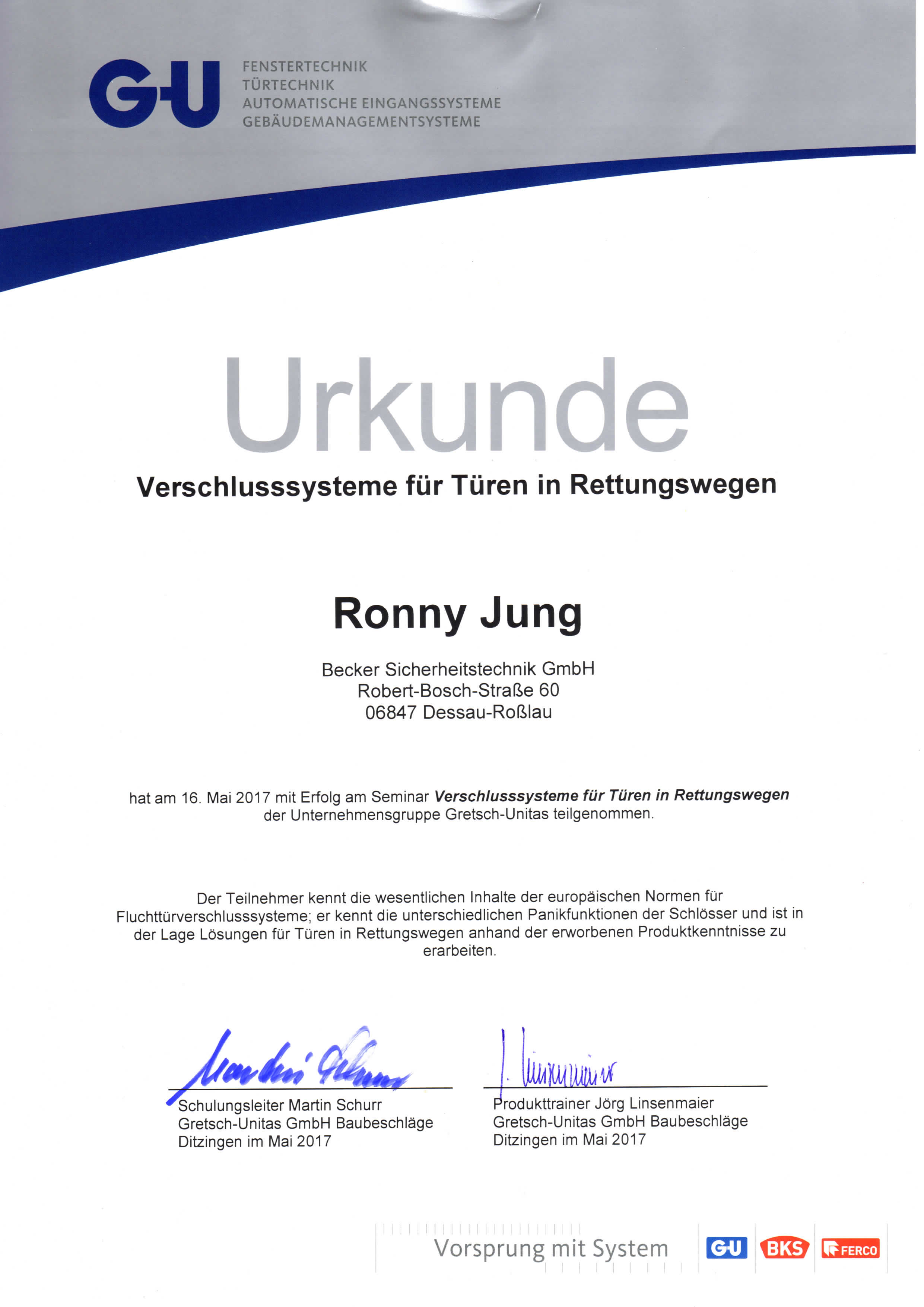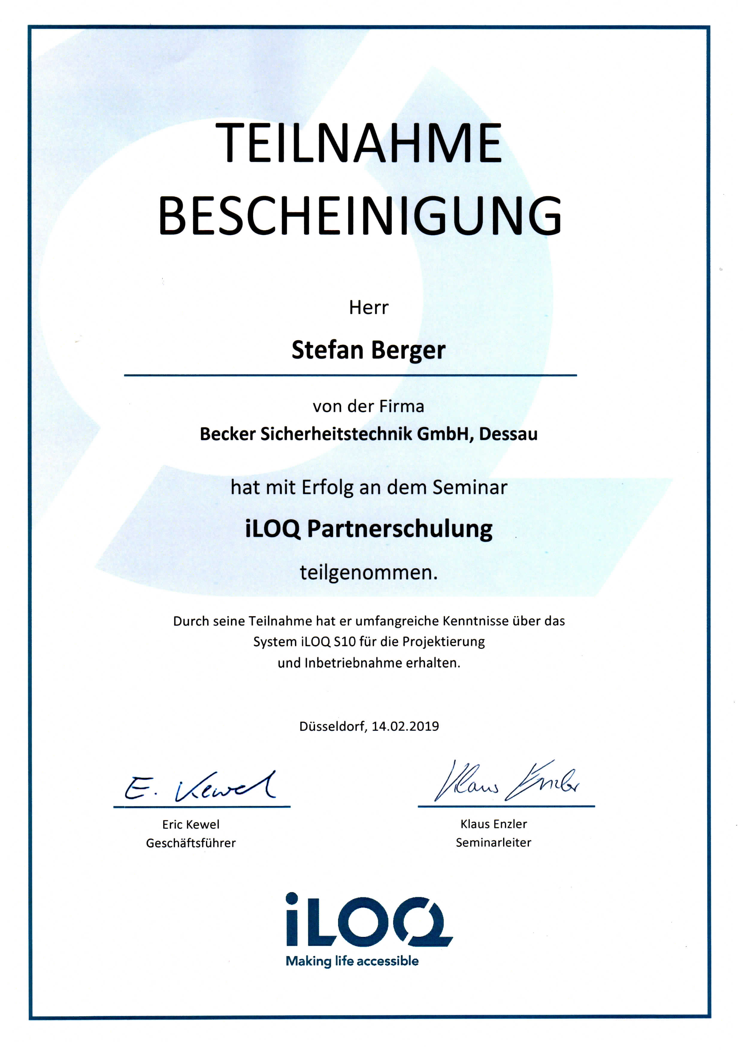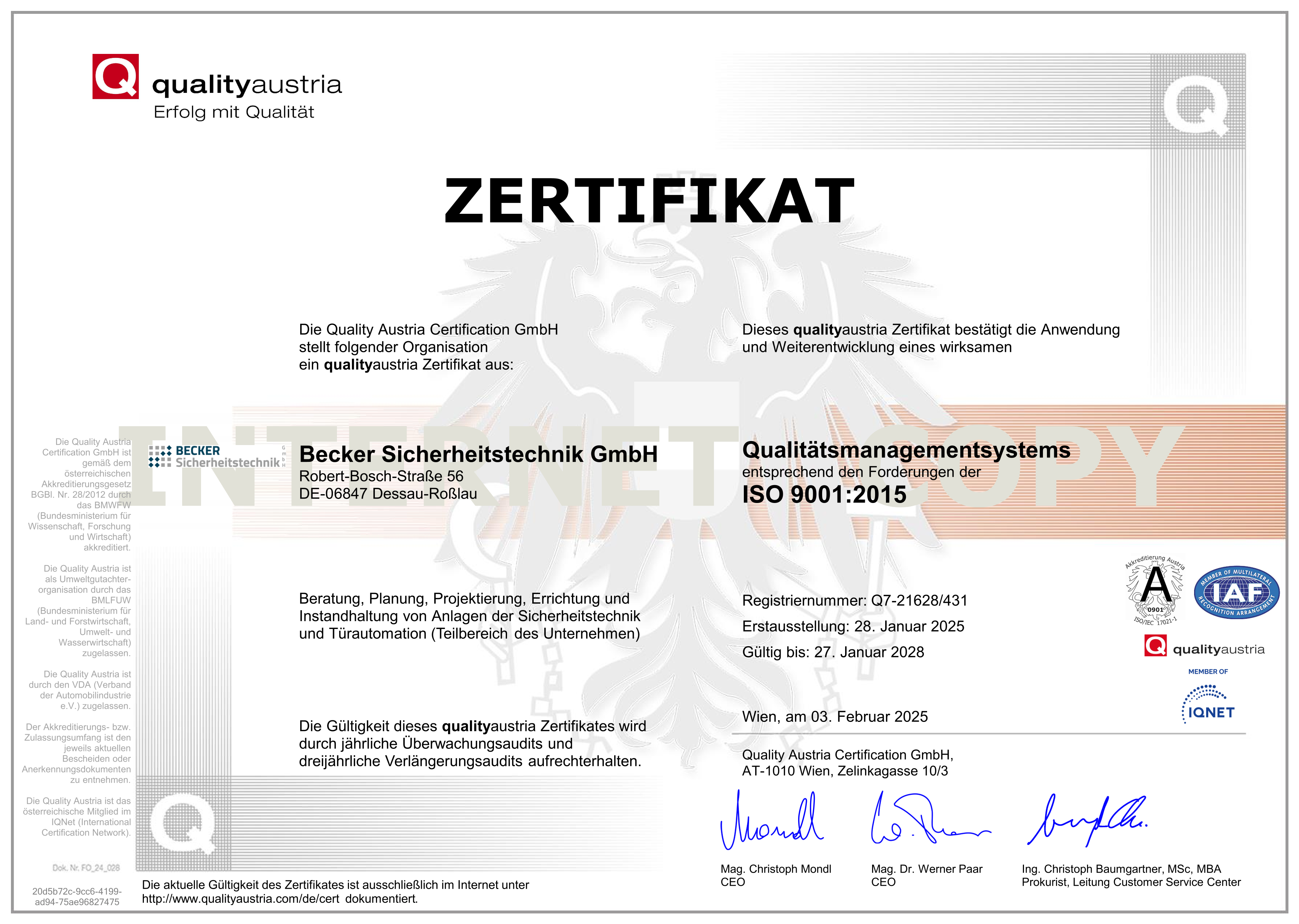 LEISTUNGSNACHWEISE/ZERTIFIKATE ISO 9001:2015 Assa Abloy dormakaba GEZE GU Handwerkskammer iLOQ SALTO SYSTEMS Simons Voss